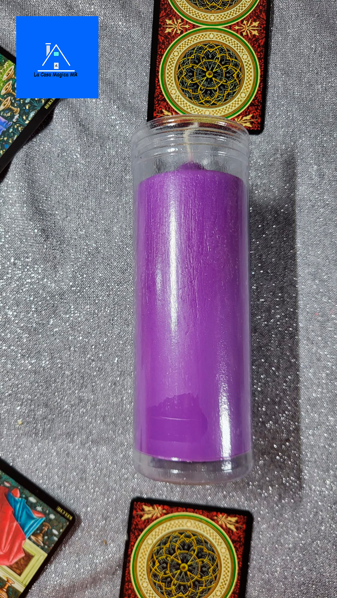 Velón violeta para rituales. También sirve para transformar lo negativo en positivo.
